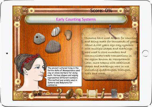 With this app students learn about the significant contributions that Ada Lovelace made to further the development of computers. She was the first to show that a calculating machine could be programmed to perform different mathematical tasks with speed and accuracy.