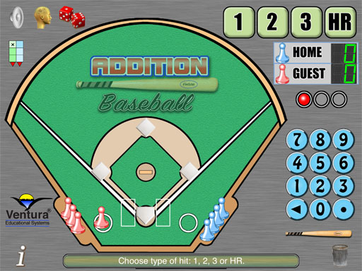 Special features make using Addition Baseball in a classroom or at home fun: