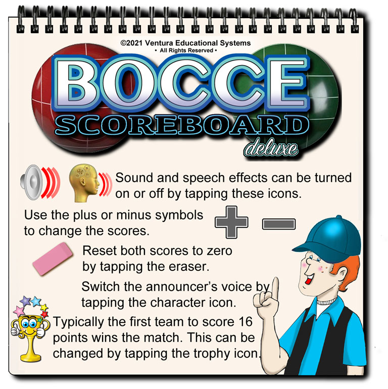 Special features make using Bocce Scoreboard Deluxe fun to use: