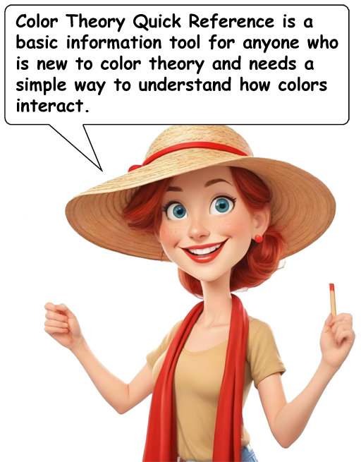 Color Theory Quick Reference is a basic information tool for anybody who is new to color theory and needs a simple way to understand how colors interact.