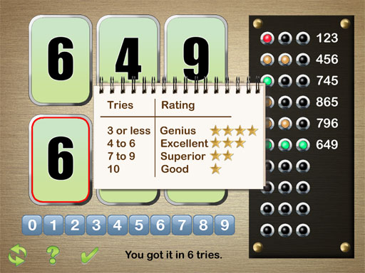 Green Light - Mystery Number Game is challenging and fun for all ages. The object of the game is figure out a three-digit random choosing by the computer. The goal is to find the number in less than 10 tries.