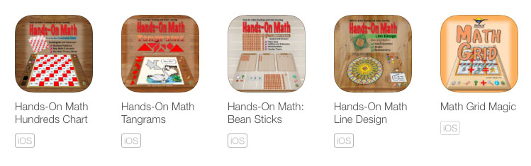| Enjoy 5 of our popular Hands-On Math apps at a substantial discount when purchased as a bundle. Hands-On Math Bundle 3 provides a useful collection of apps for teaching basic math concepts including number patterns, prime and composite numbers, geometric shapes and properties, problem solving, design and creativity, place value, geometric design, grid puzzles (number tiles) . Make your elementary math program interactive and engaging with the outstanding tools for active teaching and active learning. |