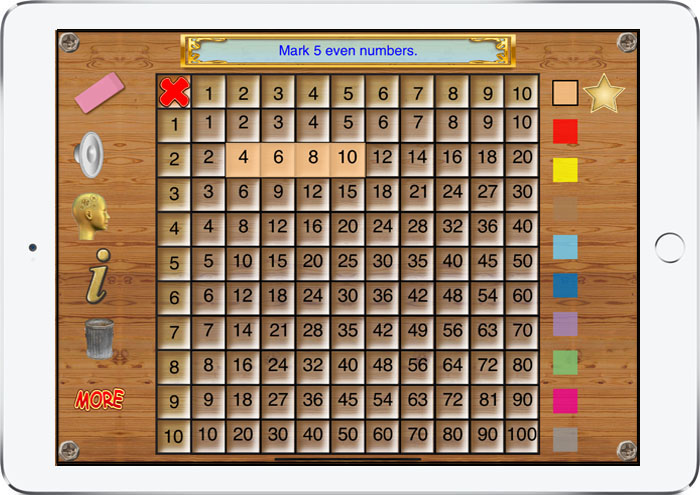 This app challenges the player to find an intersection on a grid where the product of the two multipliers fits the randomly selected problem description. Complete the activities by finding 10 correct answers. The Interactive Multiplication Chart app is designed to be a quick math exercise that teachers can use to provide practice with basic multiplication facts.