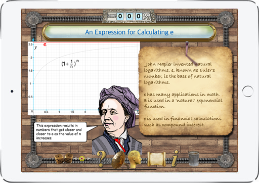 With this app students learn about the life and contributions to mathematics made by Leonhard Euler. It discusses his major mathematical discovers including his identity theorem which is considered to be one of his most significant accomplishements.