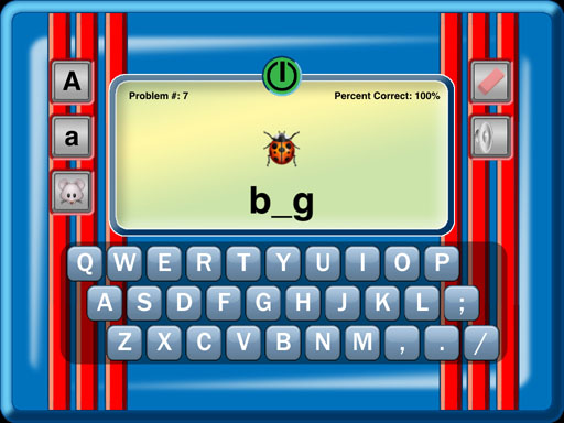 The app keeps track of the child's performance by reporting the number of problems and percent correct for each of the activities. Sound effects are used to make learning fun. For example, during the game, each randomly selected letter is pronounced