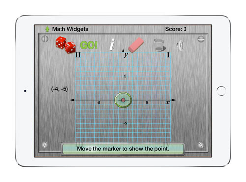 The Coordinate Grid Widget helps students learn how to locate points on a coordinate grid using the x and y axes. Each of the quadrants are labelled and students receive feedback as they attempt to locate a set of give points.
