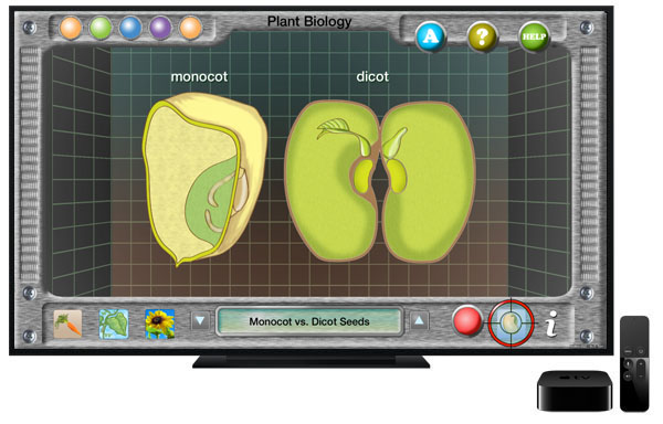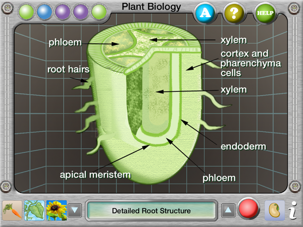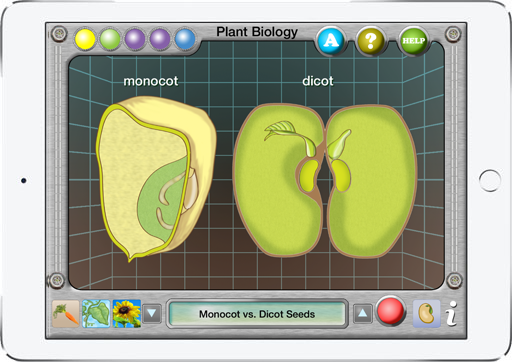 Charts and graphs are used to present cross-sectional views and information about roots, stems and leaves, flowers and seeds. Interactive Plant Biology Explorer is available for iOS and tvOS devices. It is just beautiful on a big screen TV and would be a wonderfully exciting tool in any science classroom.
