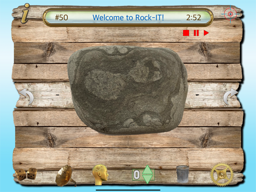 In Rock-IT! a random rock is selected from a set of 52 rocks. All of the rocks in this game were found at Malibu beach in California. By carefully examining the rock and applying a little creativity, the player will recognize a face, object, figure, space alien or some other object.