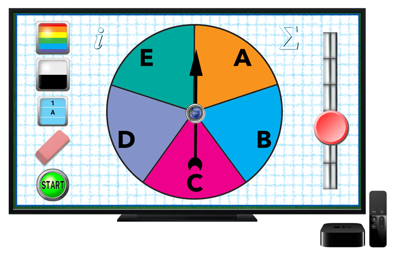Classroom Spinners is a collection of spinners specifically designed for educators. Using a slider the spinner can be changed to accommodate a variety of setups: 3, 4, 5, 6, 8 or 10 sections. Sections can be labelled with either numbers or letters.