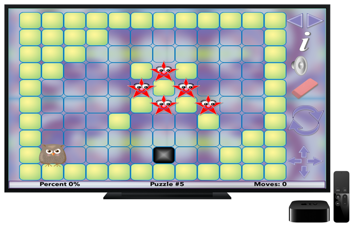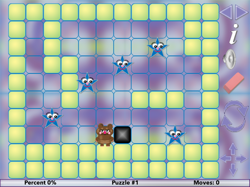 The object of Star Maze is to move the marker through the maze to capture all the stars. Tap the arrow keys or swipe the marker to move. Some of the mazes are tricky and you will need to use the blocker to help navigate to the correct row or column. The only way to move the blocker is by switching its position with the marker. Be careful because you might get stuck in a corner with no way out.