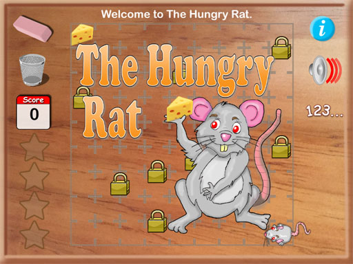 A hungry rat is trapped in a devious maze. Several of the doors in the maze are locked. In order for the rat to unlock a door he must get to the door in exactly 9 moves. If the path has more or less than 9 moves the door stays locked. To get to cheese the rat must travel through all the cells of the maze, but only once. Tap a star to choose a maze. Can you help the hungry rat find its way to the cheese?